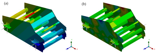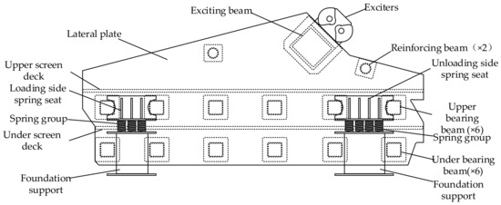 - Peng, L.P.; Liu, C.S.; Song, B.C.; Wu, J.D.; Wang, S. Improvement for design of beam structures in large vibrating screen considering bending and random vibration. J. Cent. South Univ. 2015, 22, 3380–3388. [Google Scholar] [CrossRef]