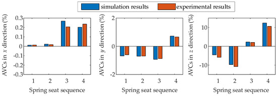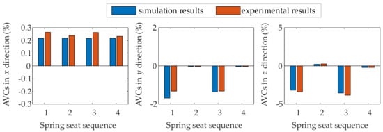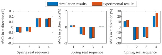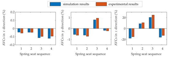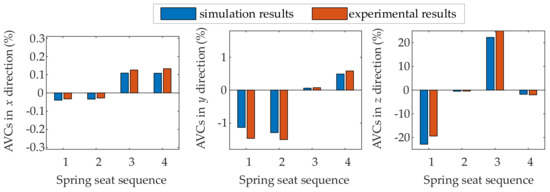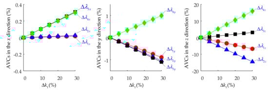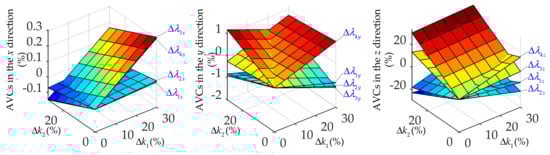 - Under failure kind 2 condition: In the x direction, all AVCs will decrease. In the y direction, the AVC , , and will decrease, while the AVC will decrease. In the z direction, the AVC and will increase, while the AVC and will decrease;