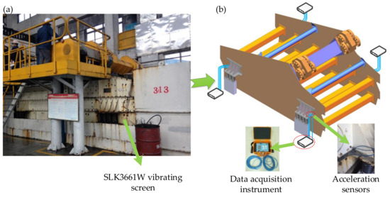 - Peng, L.; Liu, C.; Wang, H. Health identification for damping springs of large vibrating screen based on stiffness identification. J. China Coal Soc. 2016, 41, 1568–1574. [Google Scholar]