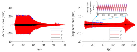 - Steady state. The accelerations and displacements gradually change into stable ranges. In this state, the system does not resonate, so it is suitable for long-term stable working;