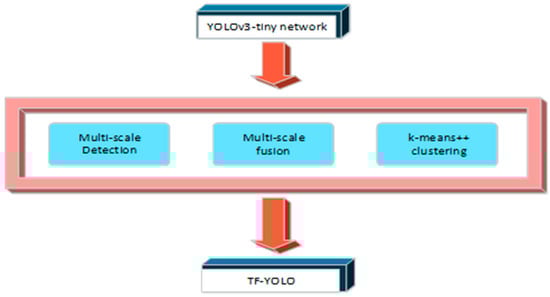 The remaining sections of this paper are organized as follows: Section 2 describes the basic object detection methods including a brief introduction about the YOLOv3 algorithm, the Darknet framework, and multi-scale detection. Section 3 introduces the TF-YOLO network which extracts features from connecting multiple layers and adopts a multi-scale prediction framework. Section 4 presents experimental verification to validate the effectiveness of the proposed detection model. Finally, conclusions are summarized in Section 5.