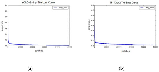 The comparison of loss curves for two networks: (a) YOLOv3-tiny network; (b) TF-YOLO network.