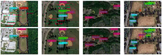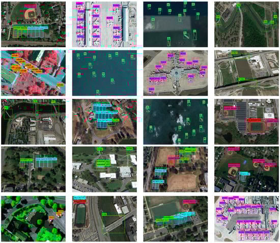 In this section, the performance of the proposed TF-YOLO network is evaluated. Specifically, aerial remote sensing images from NWPU VHR-10 [,,] are used for training and testing in the experiment. The NWPU VHR-10 dataset contains a total of 800 very-high-resolution (VHR) remote sensing images cropped from Google Earth and the Vaihingen dataset, and manually annotated by experts. The differences between remote sensing and conventional natural images can be briefly described as follows. First of all, there are numerous small targets with a little visual information in the remote sensing images. Assuming that the CNN’s pooling layer further reduces the amount of information to the small targets. After four pooling layers, a 24 × 24 target has only approximately 1 pixel, leading to the dimension too diminutive to distinguish. Secondly, there are various scale and perspective of remote sensing images. The perspectives of aerial remote sensing images are basically high-altitude, and the targets on the ground may have different size and mode. Some detectors well trained on conventional datasets may fail to perform well in remotely sensed images. Thirdly, the background of remote sensing images is complex for the large field of view. What’s more, a variety of backgrounds will extend a certain amount of interference on testing targets.