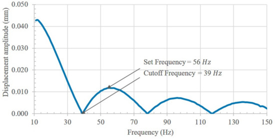 The closed-loop displacement-controlled fatigue test was performed on wrought 304 and SLM fabricated 304L SS specimens. The sinusoidal excitation frequency was set at 56 Hz. Figure 6 shows the displacement amplitude of a specimen actuated at 0.100 volts control signal amplitude for different frequencies. The system response is a window function with 39 Hz cutoff frequency. In terms of system dynamics, the fatigue test is a harmonic forced vibration of two mass-spring systems. One is the actuator, and another is the specimen. At cutoff frequencies, the system behaves like a shock absorber. A detailed explanation can be found in the literature [41]. The frequency response shows that the displacement amplitude is maximum at 56 Hz, 95 Hz, and 134 Hz. The test frequency was chosen 56 Hz since external cooling may be required at higher frequencies. All experiments were conducted for simply supported fully reversed bending test at room temperature. During the test, the temperature of the specimen was monitored using an infrared temperature sensor. The deviation in the temperature remains within ±2 C at 56 Hz test frequency.