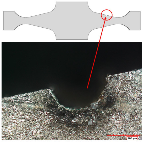 Geometrically, the size effect is related to the nonlinear distribution of the stress [22,23,24]. The stress gradient occurring under bending and shear stress has a higher influence on the size effect for a bending type test compared to axially loaded cyclic test but the axial fatigue test on mini specimens suffers buckling. In this study, the transverse bending test with a constant stress distribution within the gauge section in a specimen eliminates the stress gradient effect.