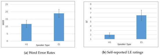 - Word Error Rate (WER) is positively correlated with self-reported LE ratings.