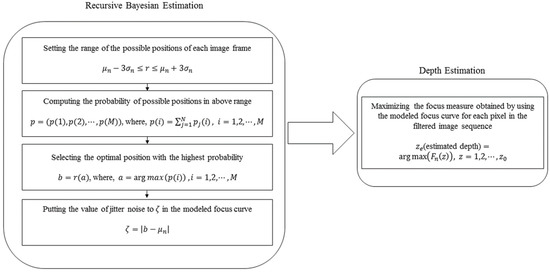 - Jang, H.-S.; Muhammad, M.S.; Choi, T.-S. Bayes Filter based Jitter Noise Removal in Shape Recovery from Image Focus. J. Imaging Sci. Technol. 2019, 63, 1–12. [Google Scholar] [CrossRef]