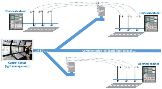 - Hernandez-Jayo, U.; Angulo, I.; Elejoste, M.P.; Perallos, A.; Chertudi, A.; Moreno, A. Streetlight intelligent remote control system based on wireless communication. In Proceedings of the 2013 10th International Conference on Remote Engineering and Virtual Instrumentation (REV), Sydney, Australia, 6–8 February 2013; pp. 1–4. [Google Scholar] [CrossRef]