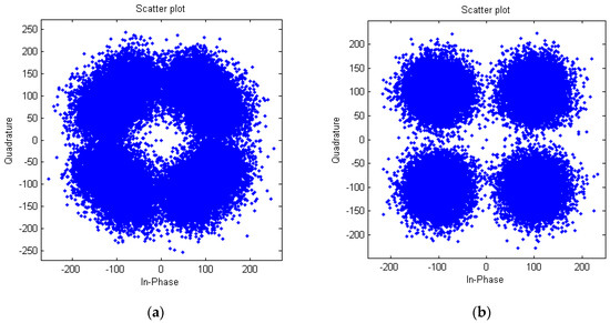 Figure 4 shown the constellation of the MR-OFDM with the CFO effect and after CFO compensation over the Gaussian channel. We can see that the system performance is improved after using the proposed scheme.