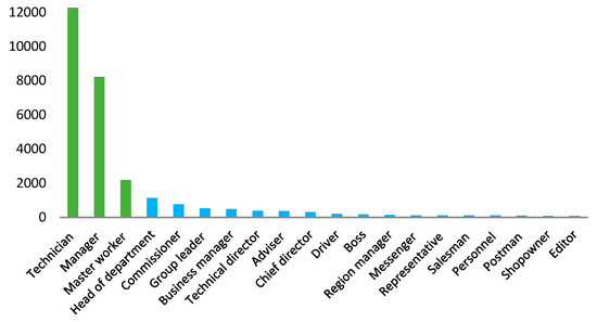 Figure 7 presents the statistical results of job noun frequency in the natural texts of complaint handling results. Although there is no resource attribute in each CHS case in the original data of our study, we can find most of the categories of business staff of the company involved in CHS process from Figure 7, such as technician, manager, master worker, head of department, commissioner, group leader, and so on.