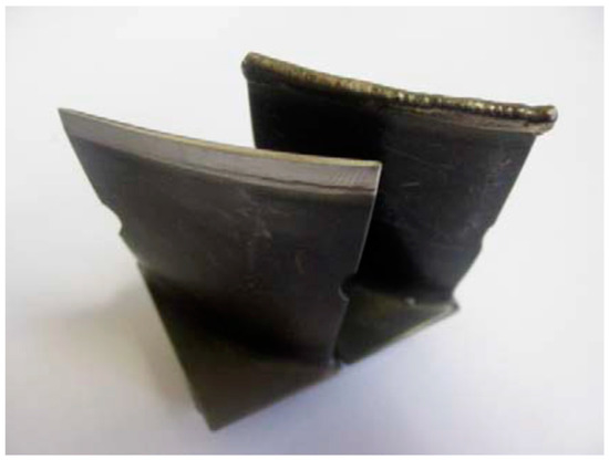 Yilmaz et al. studied a repair and overhaul methodology to recover the complex geometry of expensive parts for aerospace industries [91]. They successfully implemented their repair process on a critical aero-engine component like thin-curved compressor blade (Figure 16). Their repair approach included the 3-D non-contact digitization, free-form surface reconstruction using DED process, and milling operations in an automatic hybrid process. It was found that the total repair time through their approach was 30% lower than the conventional methods. According to Yilmaz et al., the proposed repair methodology could be taken into account as a reliable and time-cost effective approach in comparison with the conventional repair methods. However, to implement this approach, several challenges should be considered and addressed, for instance, an adaptive and automated digitizing, adaptive surface reconstruction, and precise machining strategy, for individual blade geometry to obtain a reliable and cost-time effective repair approach.