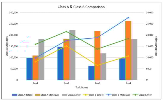 Figure 13. Comparison of the number of received class A & B messages for each observation.