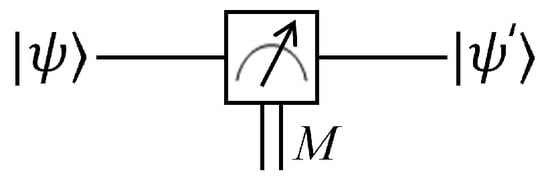A projective measurement is described by an observable, M, a Hermitian operator on the state space of the system being observed []. The observable has a spectral decomposition that is described in the form presented in Equation (6):