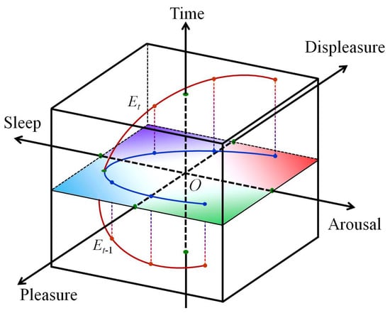 The intrigues required to model such multi-variate and continuously-changing feelings make descriptions of emotional state and their often-wavering transition from one state to another a very daunting exercise. To mimic the uncertainty related to emotions and their transitions, the notion of emotion space is used. An emotion space is used to quantitatively and visually imitate a human or robot’s emotions as it interacts with itself, others, and its environment over some interval in time []. Our review of the timeline for use of emotion space in emotional intelligence kicks off with Russel’s work from 1997, wherein a pleasure-arousal (PA) judgement space was proposed as a psychological judgement space for assessing affective feelings []. In that study, two dimensions were associated with the general characteristics needed to represent both the specific emotion as well as their continuous variation. Therefore, each emotion could be placed in the resulting PA space when emotion-eliciting factors are translated into appropriate values in the coordinate system. In 2001, a three-dimensional space was used to define as a mental model for a robot based on the PA space []. A certainty axis, which is a continuously varying value in the range −1 to +1, was added to this new space to produce smooth and effective communication between humans and robots. Subsequently, considering the rapid variation in mental state due to real-time human-robot interaction, an affinity-pleasure-arousal space was proposed in []. In this model, the affinity axis was used to describe the transition from one mental state to another as dictated by the progress in the conversation and repetitive interaction. The pleasure-displeasure and arousal-sleep axes in the space are related to the happiness of interlocutor as well as the liveliness in the dialogue, respectively. In 2013, Liu et al. proposed the concept of fuzzy atmosfield (FA) to represent the atmosphere created during interactive communication involving many humans and/or roots []. This study employed a 3D fuzzy cubic space to represent the sates of the FA where the three coordinates are defined as “Friendly-Hostile”, “Lively-Calm”, and “Casual-Formal” within the range −1 to +1.