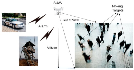 Illustration of aerial surveillance with a small unmanned aerial vehicle (SUAV).