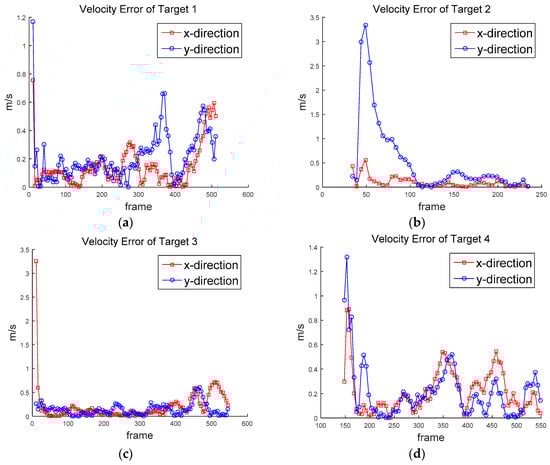 where Kt(s) and Kt(f) are the first and last frame where target t is estimated. The velocity error of target is obtained in x and y directions, respectively:
