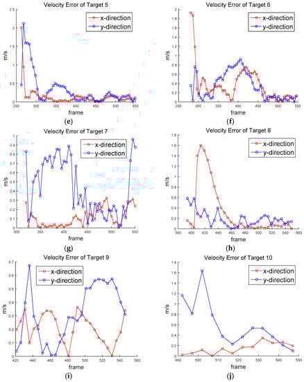 Velocity error of (a) Target 1, (b) Target 2, (c) Target 3, (d) Target 4, (e) Target 5, (f) Target 6, (g) Target 7, (h) Target 8, (i) Target 9, (j) Target 10.