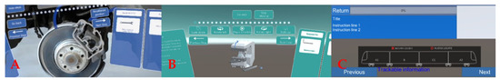 (A): overlapping of digital information on the real brake system. (B): digital instructions to disassembly the component. (C): digital information for the train driver.