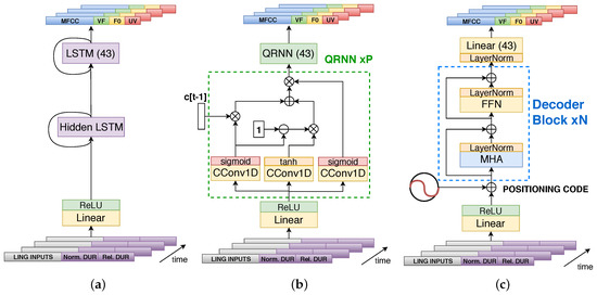- Zen, H.; Sak, H. Unidirectional long short-term memory recurrent neural network with recurrent output layer for low-latency speech synthesis. In Proceedings of the International Conference on Acoustics, Speech and Signal Processing (ICASSP), Brisbane, QLD, Australia, 19–24 April 2015; pp. 4470–4474. [Google Scholar]