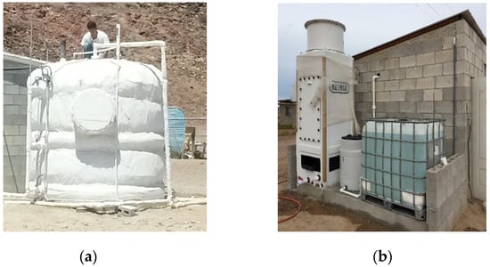 Given the problems of water availability in the region and, being a community next to the sea, the cooling water circuit has two variants: normal water mode and seawater mode. In the first mode of operation, freshwater is used as a direct cooling medium for the chiller; it is fed into the absorption machine to remove the heat and transfer it to the environment with the cooling tower. When seawater is used, the cooling of the system is carried out indirectly. The cooling water circuit is divided into two; the tower is responsible for cooling the seawater and recirculates it in an independent circuit, while, in the other circuit, freshwater is used to remove heat from the chiller and, by means of a titanium coil submerged in the seawater reservoir of the cooling tower, the removed heat is transferred. This is done in order to not introduce the incrusting and corrosive compounds that the seawater carries with it into the internal heat exchangers of the absorption machine, as well as to not depend on replenishment of freshwater due to evaporation by cooling the system. There is also a diesel auxiliary heater in the hot water circuit so that, if the temperature conditions in the TEST are not met, the system can be operated. The previous equipment installed in the Puertecitos school is shown in Figure 1 and Figure 2.