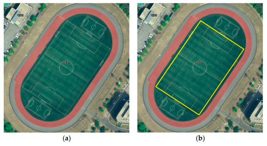 The experiment ground. (a) Konkuk University playground with 2.6-ha area. (b) Line tag marked zone for the experiment.
