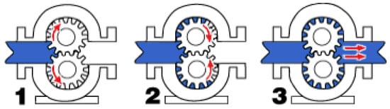 - Huang, K.J.; Lian, W.C. Kinematic flowrate characteristics of external spur gear pumps using an exact closed solution. Mech. Mach. Theory 2009, 44, 1121–1131. [Google Scholar] [CrossRef]