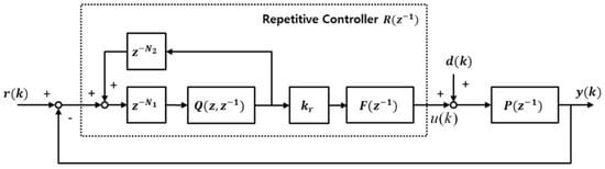 where N is the period of periodical disturbance. The closed-loop system containing the repetitive controller of Equation (3) is always asymptotically stable in [10]. In this study, the repetitive controller factor ( was set to 0.8 in order to ensure the stability. The transfer function in the form of a low-pass filter is defined as follows: