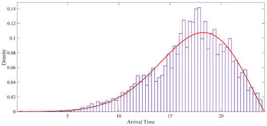 23]. The input data are extracted from the probability distribution function (PDF) of travel data to produce the necessary information for PEVs fleet. The distribution function is used to create the PDF of arrival time and travel distance is the generalized extreme value (GEV) distribution which are shown in