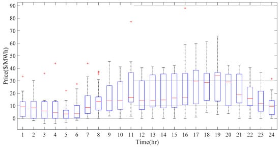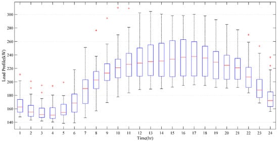 Figure 5 shows the load profile of the modeling scenarios after the scenario reduction. Each whisker shows the variability of the load profile of scenarios for each hour of the day. On average, the load profile is higher between 12 pm to 5 pm. Electricity price is at the highest point at 5 pm, when the load profile is also the highest, on average, as shown in
