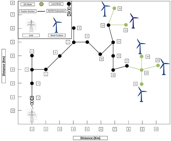 For the numerical study, a 21-node sample distribution network has been employed which is 13.8 Kv and has 20 feeder section which is shown in