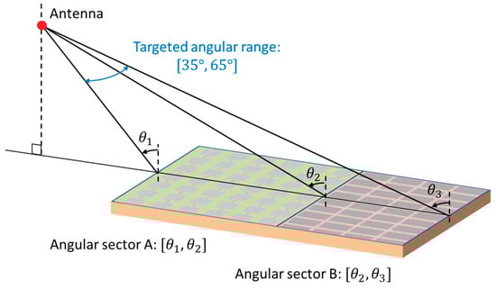 Angular range targeted for the present study. The platform is separated in two sectors for which the absorber can be optimized on a narrower range of incident angles.