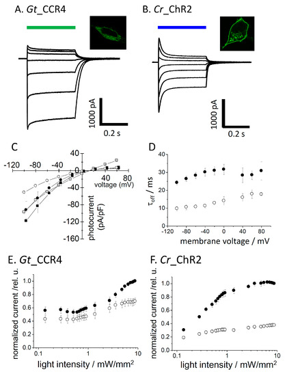 3.5. Gt_CCR4 Is Inactivated by 590 nm Light But Fully Reactivated by Blue Light