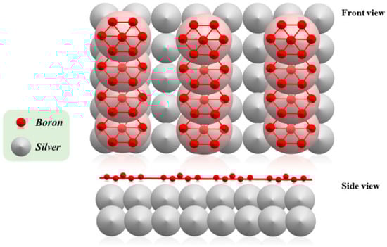 Numerous 2D boron nanostructures have been created by research groups over time. However, monoatomic-thin boron layers have energy that is higher than 3D bulk-state boron, and this fact means that the 2D structure of boron is thermodynamically unstable. In this landscape, a metallic substrate is necessary to counteract the 3D nucleation barrier in order to attract the boron atoms into the 2D monoatomic-thin Boron layer form. Borophene that has been successfully synthesized on the surface of Ag(111) by deposition has also been also defined as an “atomic-thin two-dimensional boron sheet” [12].
