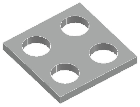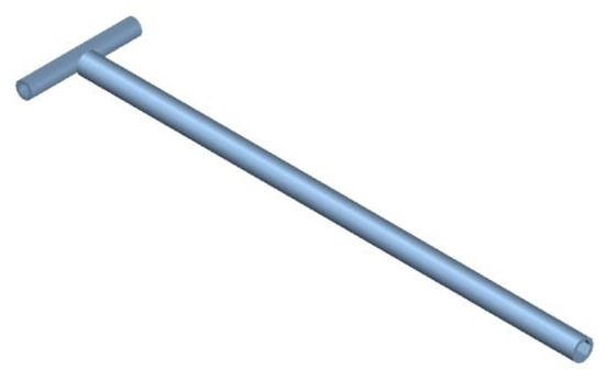 The modular connection with four beams and four columns was tested. Two full-size joints, numbers S1 and S2, were designed. The bolts were made with No.45 steel; other elements were made of Q235B steel. The columns and beams were made by cold-bending 150 mm × 150 mm × 8 mm square steel, while the beams were 1500 mm long and the columns 1000 mm long. Three groups of beam steel and bolt steel were selected for the material test, and the average result is shown in Table 1. The bolt and its size are shown in Figure 8a. The base plate is 30 mm thick, as shown in Figure 8b. The twisting tool is shown in Figure 8c. The upper plate is 30 mm thick, as shown in Figure 8d. The bottom plate is 15 mm thick, as shown in Figure 8e. The diagonal stiffener for specimen S1 is 10 mm thick and the one for S2 is 16 mm thick, as shown in Figure 8f.
