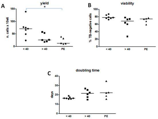 Human amniotic mesenchymal stromal cells were isolated, as previously described [25], from a piece of amniotic membrane (AM) of 5 cm2. The yield is then the number of cells retrieved for each specimen. The viability of retrieved cells was evaluated by the trypan blue exclusion test.