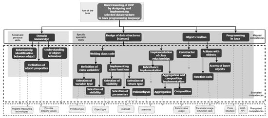 Example of competency tree for object-oriented programming (OOP) course test, dedicated to evaluating students’ understanding of OOP by design and implementation of selected data structure in Java.