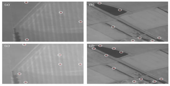 Comparison of CPs: (a,b) non-histogram matched image; (c,d) the proposed histogram matched image.