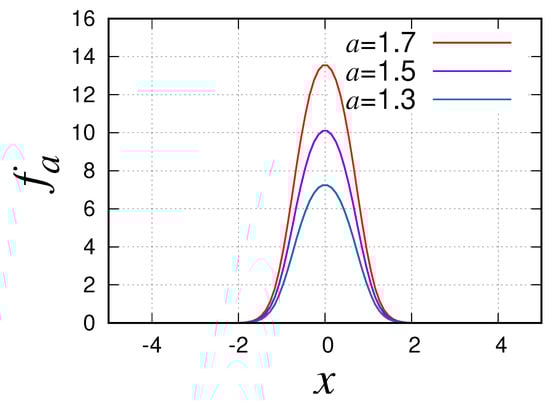 where is a constant. Thus, a is the parameter to be reconstructed in our toy inverse problem. As is shown in Figure 2, the function has one peak at and the maximum value is , monotonically decays for , and as .