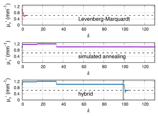 Related to the Metropolis–Hastings Markov chain Monte Carlo algorithm, quantum annealing [44] has been developed in addition to simulated annealing. Aiming at escaping from local minima, brute-force search and genetic algorithm [45] are also well-known optimization algorithms. The introduction of these methods in NIRS may be found useful in the future.