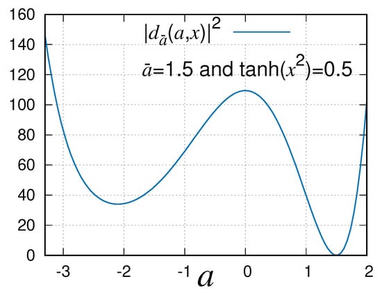 For a given , the function has one global minimum at , one local minimum at , and one local maximum at . Therefore, the above expression implies that Algorithm 1 (LM) fails when the initial value is negative and the correct value is reconstructed only for a positive initial guess. Indeed, the computation ends up with if we start the iteration from (see below) or , and the value is obtained when . Figure 7 shows for and .