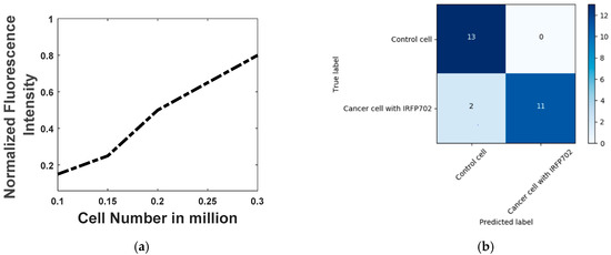 (a) Fluorescence intensity vs cell-number (b) Confusion matrix