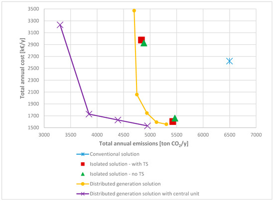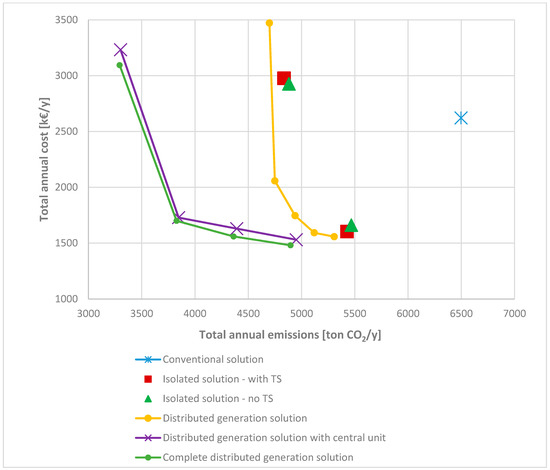 Finally, Ren et al. [19] proposed a multi-objective optimization model to analyse the optimal operating strategy of a distributed energy system, while combining the minimization of energy costs with the minimization of environmental impact, which is assessed in terms of CO2 emissions. Carvalho [20] presented a model for the synthesis and operation optimization of residential units, considering environmental and economic aspects.