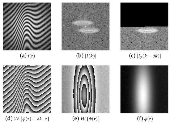 - Bone, D.J.; Bachor, H.A.; Sandeman, R.J. Fringe-pattern analysis using a 2-D Fourier transform. Appl. Opt. 1986, 25, 1653–1660. [Google Scholar] [CrossRef]