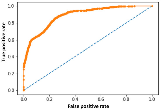 Observing the comparison, it is evident an efficiency increase of the LSTM-AR- of 9% if compared with the LSTM traditional approach, and of 6.5% if compared with the MLP method optimized for diabetes prediction model [38]. Figure 12, Figure 13 and Figure 14 illustrate the accuracy, the loss, and the ROC curve of the LSTM-AR- outputs.