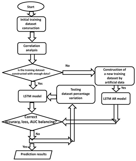 The LSTM approach has been improved by implementing a new approach to the training dataset construction based on artificial data creation (LSTM artificial records—AR—). In the case of 20% of the testing dataset characterized by the best compromise between accuracy and loss parameter has created a new training dataset following these criteria: