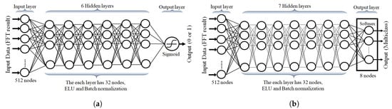 N, the hidden layer has 32 nodes in each layer and the output layer has eight nodes. The activation function for the output layer used the SoftMax. We use Batch Normalization (BN) for performance improvement, which helps train the optimal scale (mean and variance) for each layer’s input data. Generally, it is known that BN in DNN can produce a large enhancement in the result [