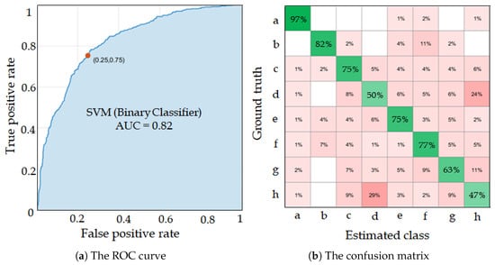 Figure 9 shows the ROC curve of the binary classifier and the confusion matrix of the multiclass classifier using SVM.