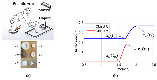 The distance travelled by objects and acceleration after collision is shown in Figure 6b,d, respectively. Five videos are taken for each object by creating collisions with the manipulator. The coefficients of frictions are calculated by using Equation (29). The average value of the coefficient of friction, with standard deviation, is given in Figure 7.