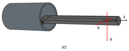 Therefore, in the first case, optimal actuation direction is along cutting velocity, while in the second case, it is necessary to actuate in the radial depth of cut direction. As observed by Pratt and Nayfeh [15], chatter passes from primary to regenerative varying radial depth of cut, due to the presence of tool nose, which determines cutting force direction. In deep boring process, tools, due to the high aspect ratio, are highly flexible in both these direction (Figure 2c). Then, in order to ensure a damping effect independently of depth of cut, active boring bar must be able to reduce vibrations both along cutting velocity and feed direction.