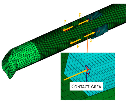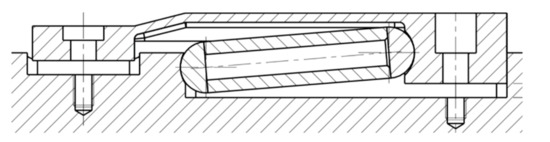 Covers are supposed to be jointed to the tool body by means of hexagon socket head cap screws able to provide an adequate force for placing. Hole position was chosen spaced enough from the contact area, where contact stress is less than 0.1% of maximum contact stress. As a result, slot length is obtained as the sum of insert length and actuators length (Figure 14).